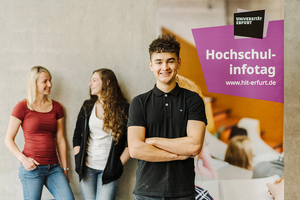 Die Universität Erfurt ist eine geisteswissenschaftliche Reformuniversität. Sie bietet insgesamt 47 Bachelor- und Master-Studiengänge an. An der Hochschule gibt es 5.700 Studierende, 102 Professorinnen und Professoren sowie 228 wissenschaftliche Mitarbeiterinnen und Mitarbeiter. Ihr besonderes Profil unter den Thüringer Hochschulen erhält die Universität durch die Schwerpunkte „Religion“ und „Bildung“.